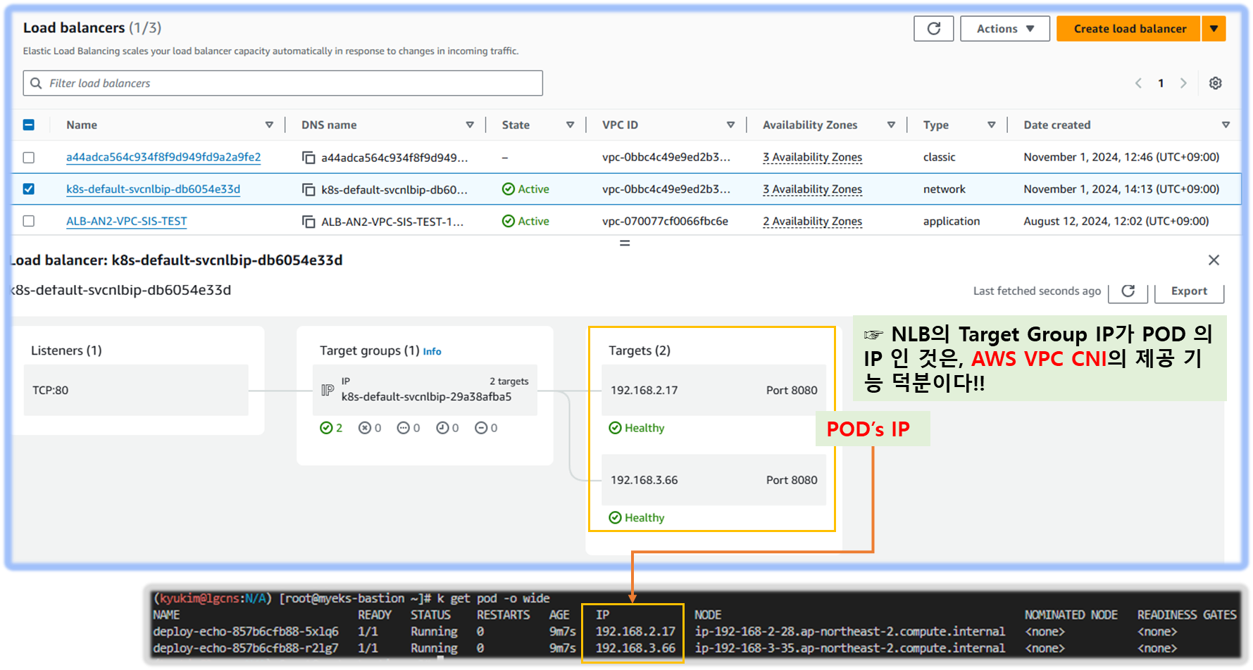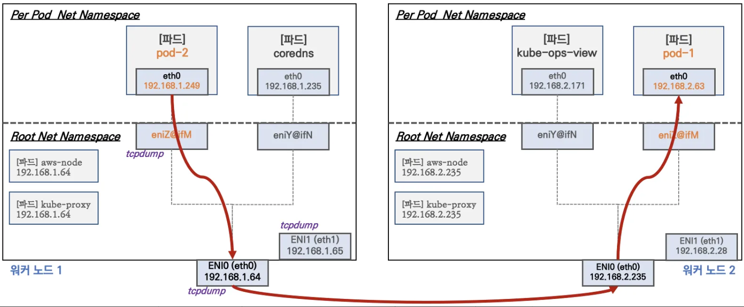 - [도전과제8] AWS VPC CNI 환경에서 Service(LoadBalancer Type)을 NLB(IP mode) 구성 시 NLB → Node(Pod) 구간에 Flow를 분석 정리