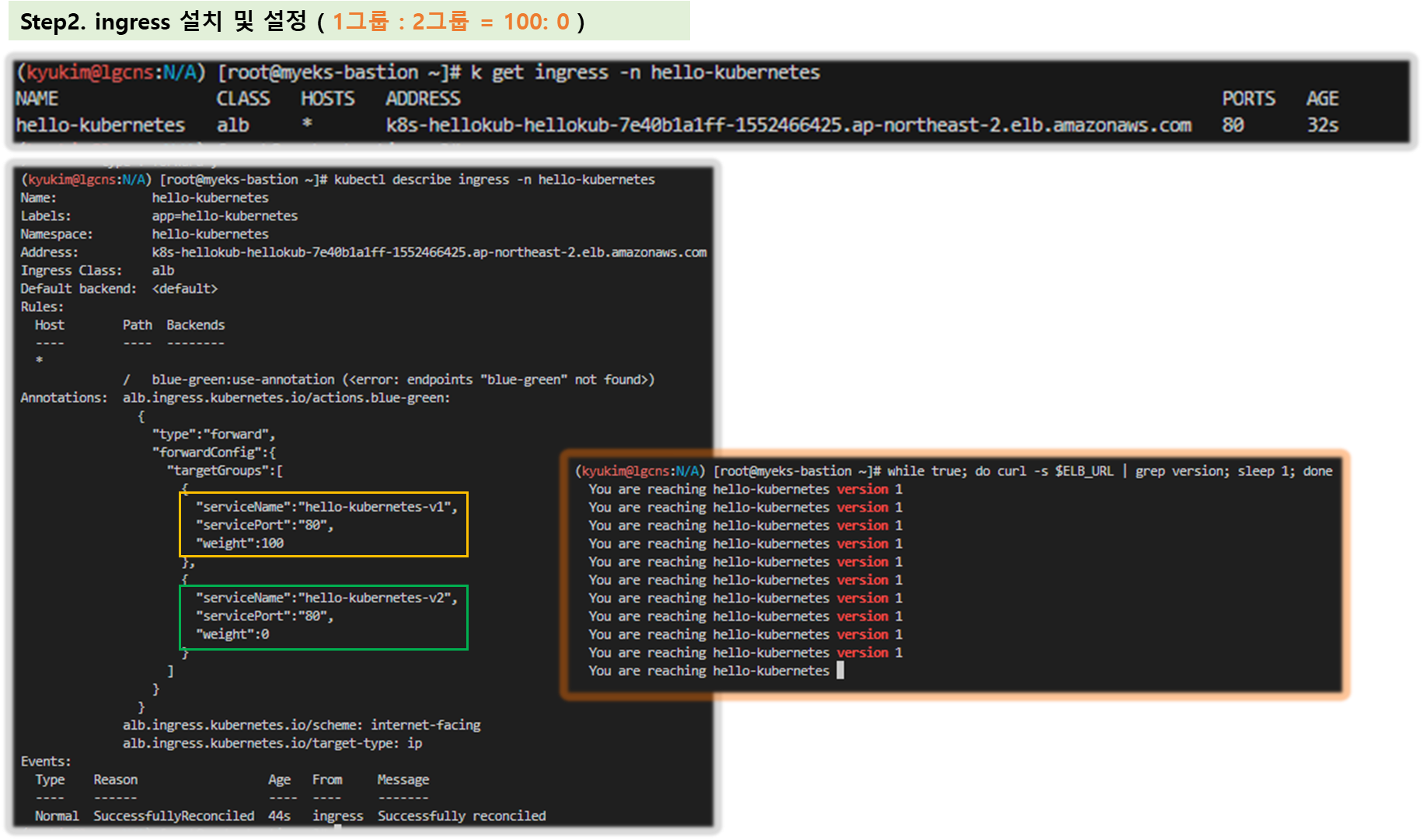 - [도전과제2] AWS Load Balancer Controller Blue/Green Split Traffic - Link