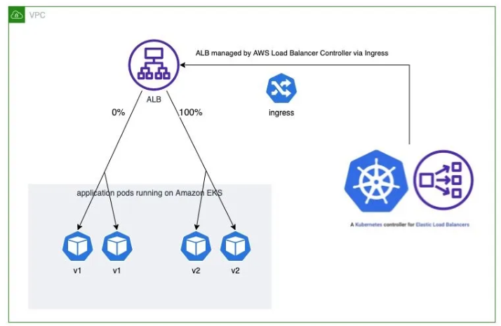- Using AWS Load Balancer Controller for blue/green deployment, canary deployment and A/B testing - Link