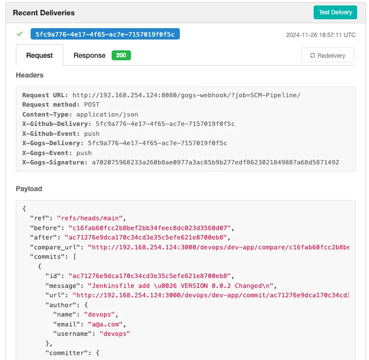 Step6. Gogs WebHook 기록 확인