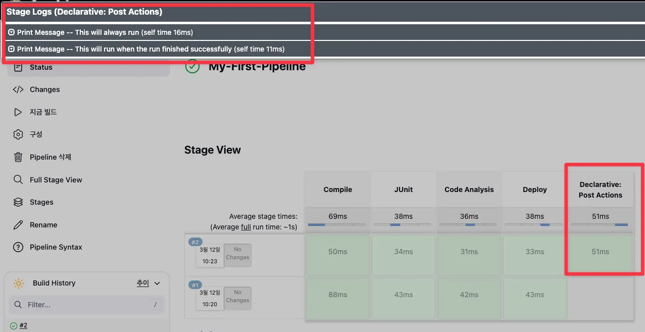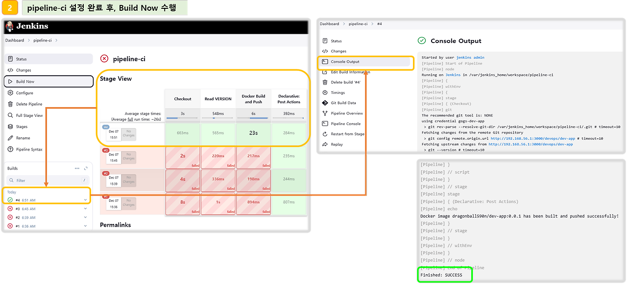 2) 지금 빌드 → 콘솔 Output 확인