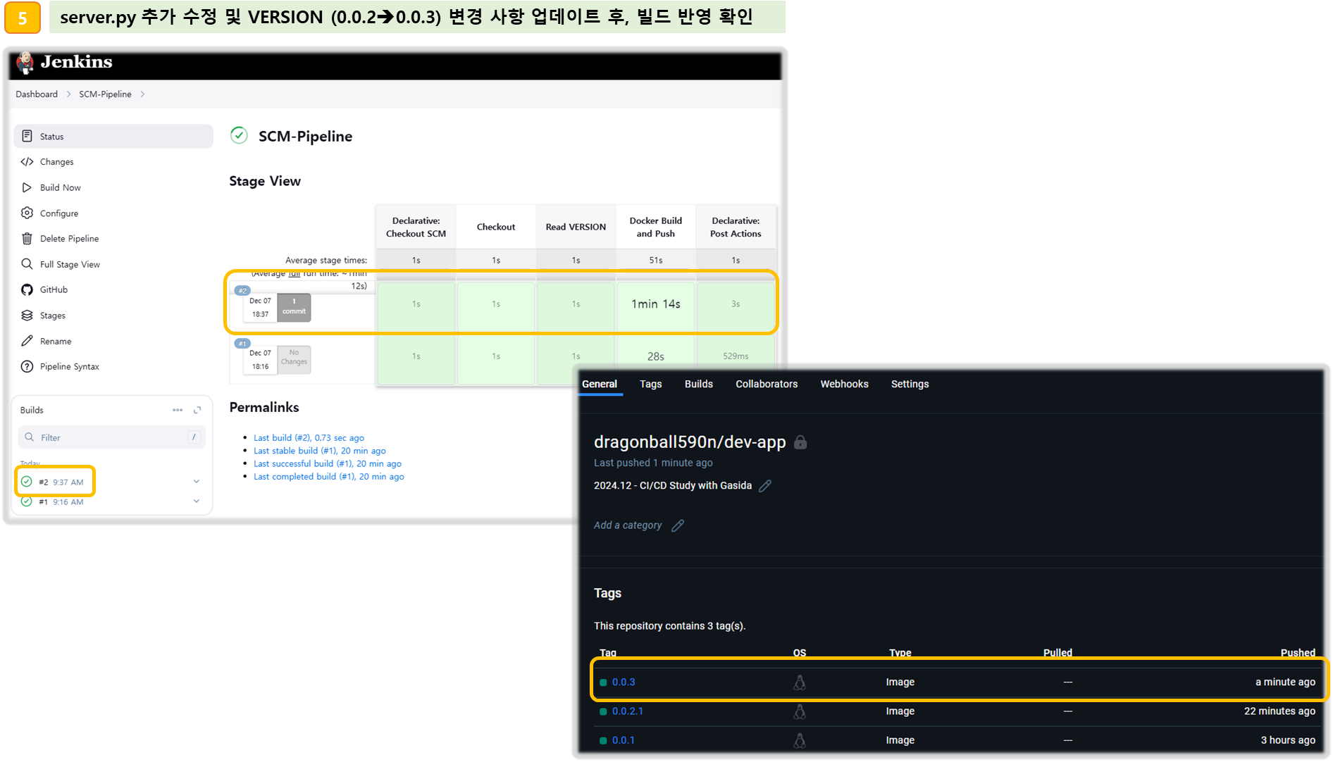 Step7. server.py 와 VERSION 변경 후 Jenkins 트리거 작업 한번 더 확인하기