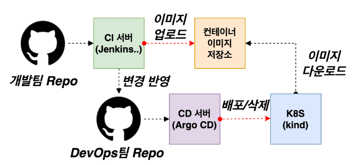 ☞ 과정목표 : 이번 실습과정에서는 Jenkins 와 Argo CD의 연계를 통해 K8S 의 배포의 자동화까지 구현하는 과정을 따라하며 이해할 수 있다.