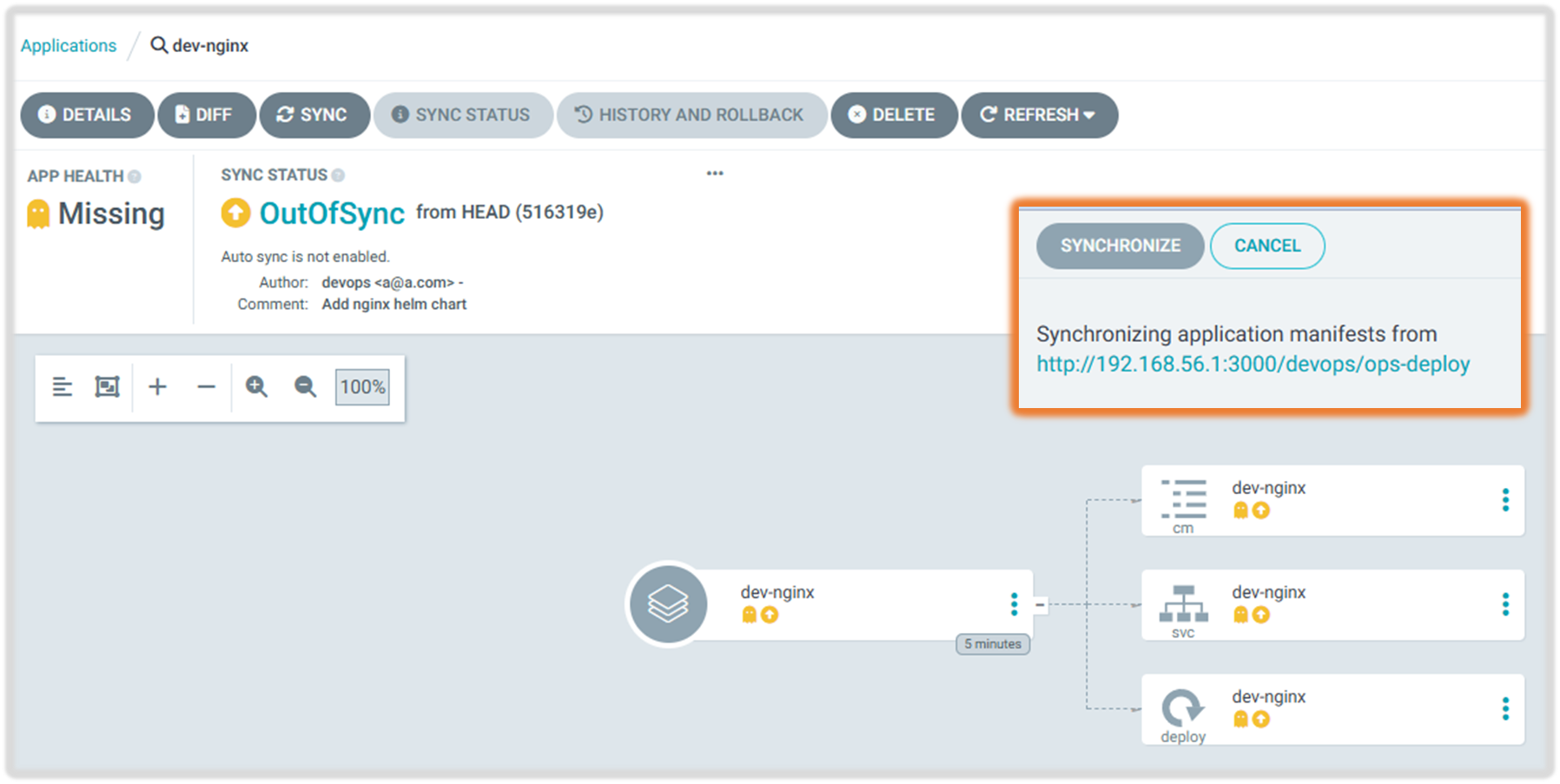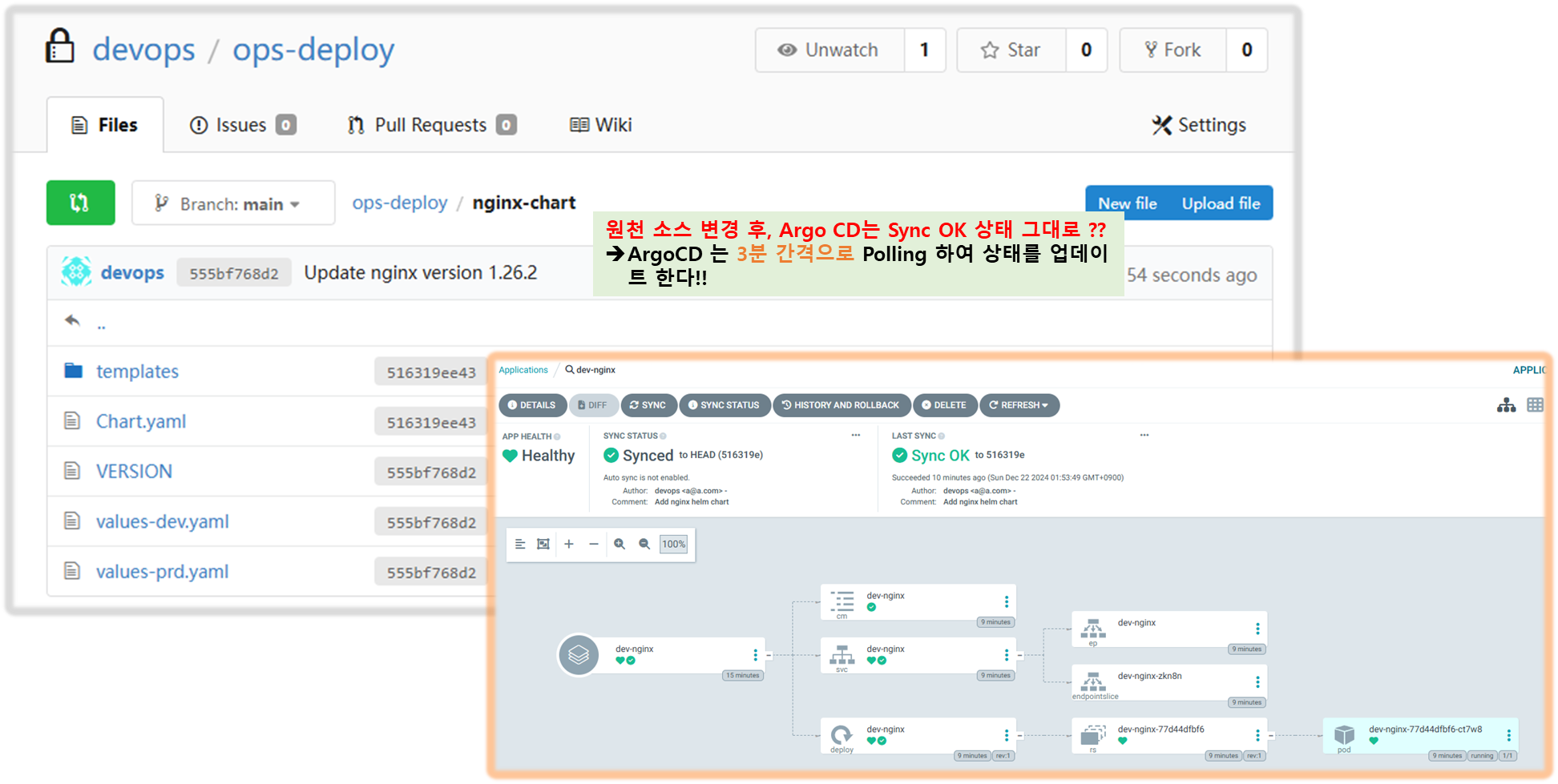 - 애플리케이션을 원하는 상태로 자동 또는 수동으로 동기화
