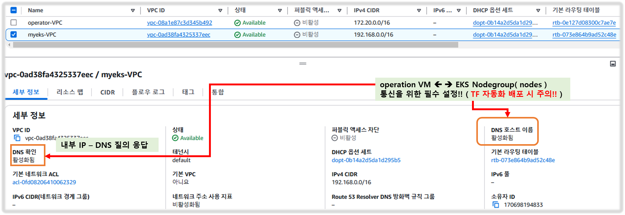 - operator-vpc 에 AZ1를 사용하는 퍼블릭/프라이빗 서브넷 배치