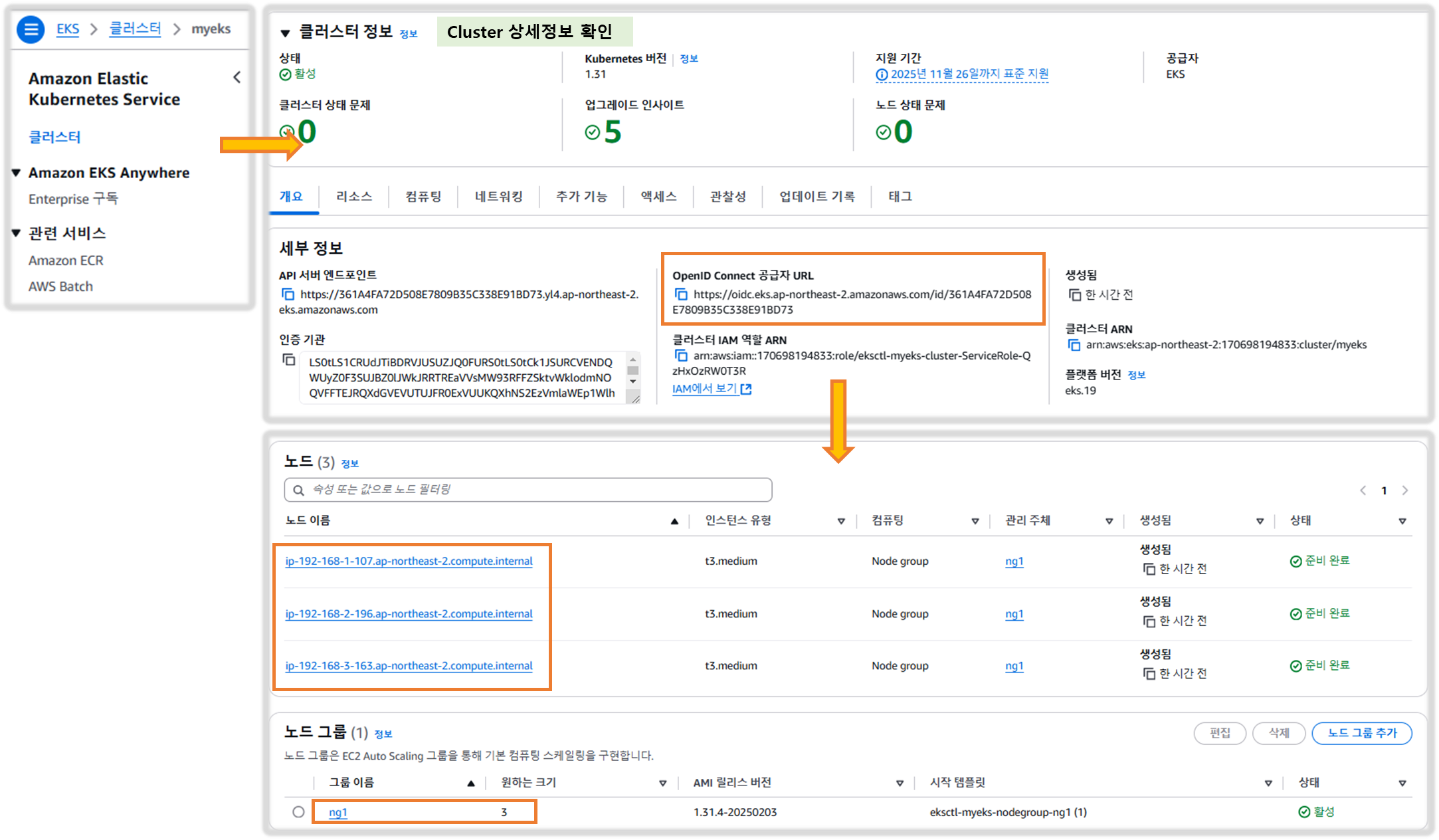 - 관리형 노드 그룹(EC2) 접속