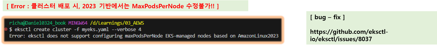 - EKS 배포 후 실습 편의를 위한 변수 설정 삭제 : macOS : vi ~/.zshrc , Windows(WSL2) : vi ~/.bashrc