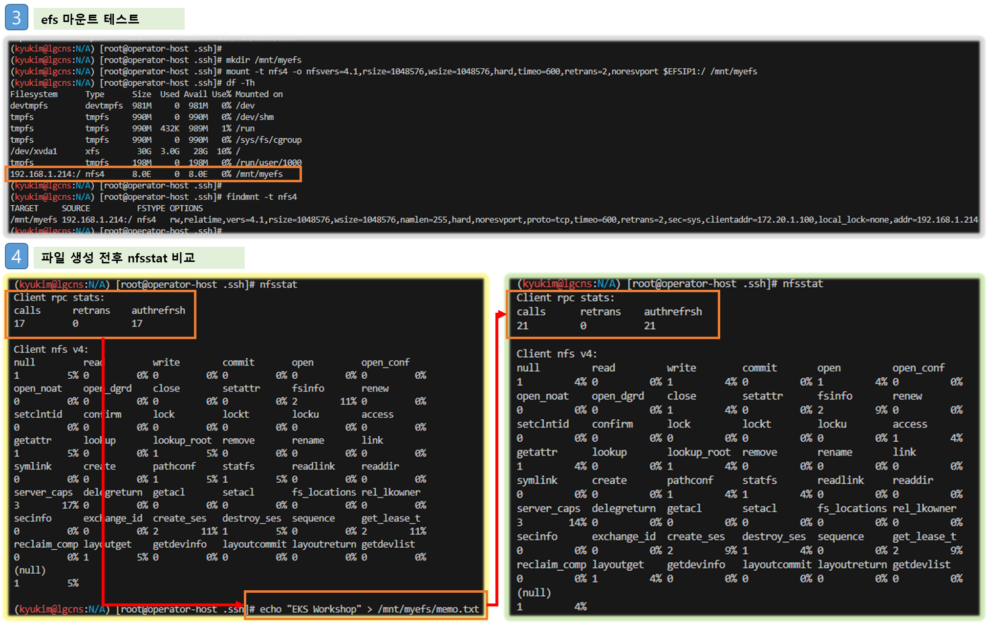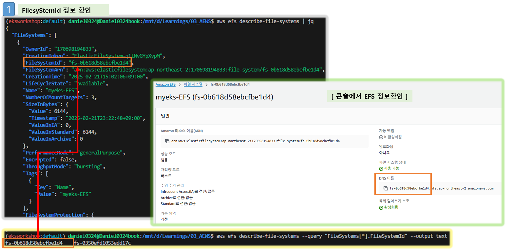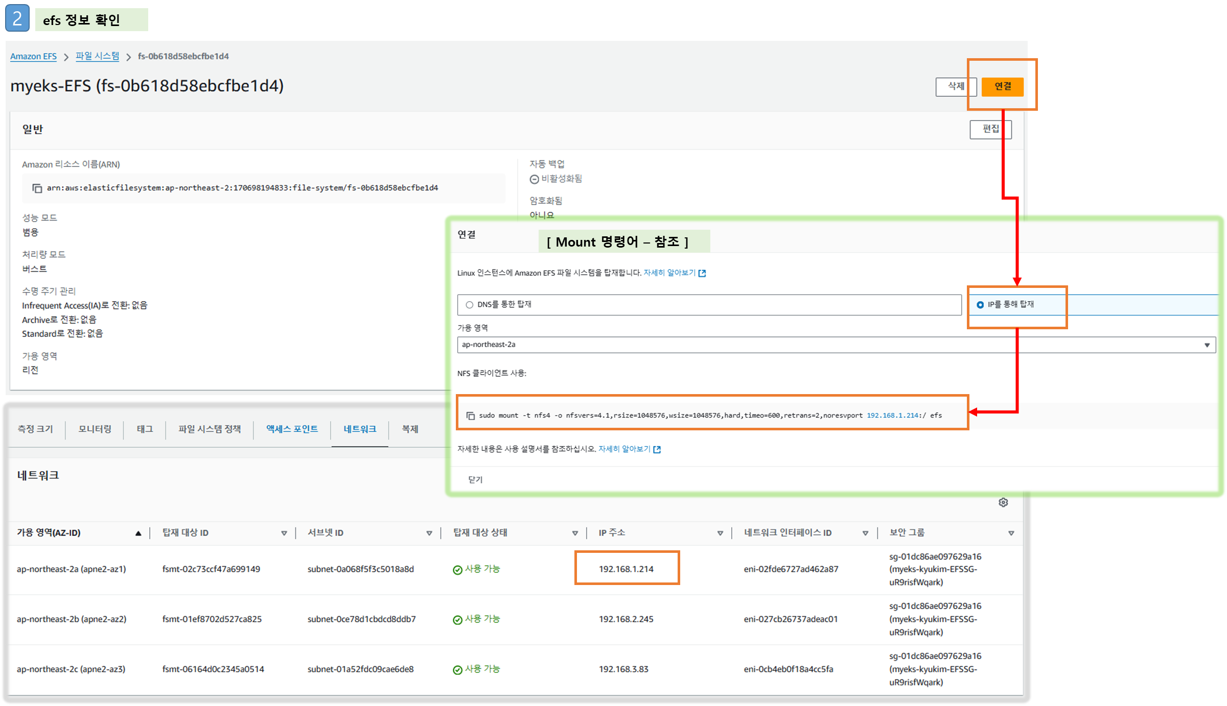 ▶ 구성도 : 2개의 VPC(EKS 배포, 운영용 구분), myeks-vpc의 public 에 EFS 추가
