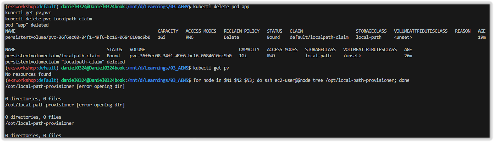 - Amazon EKS 클러스터 삭제(10분 정도 소요): eksctl delete cluster --name $CLUSTER_NAME