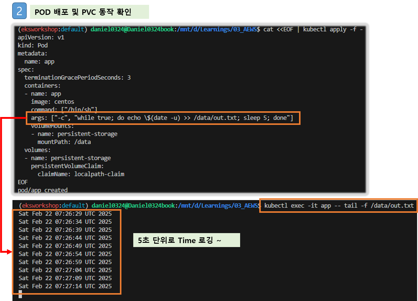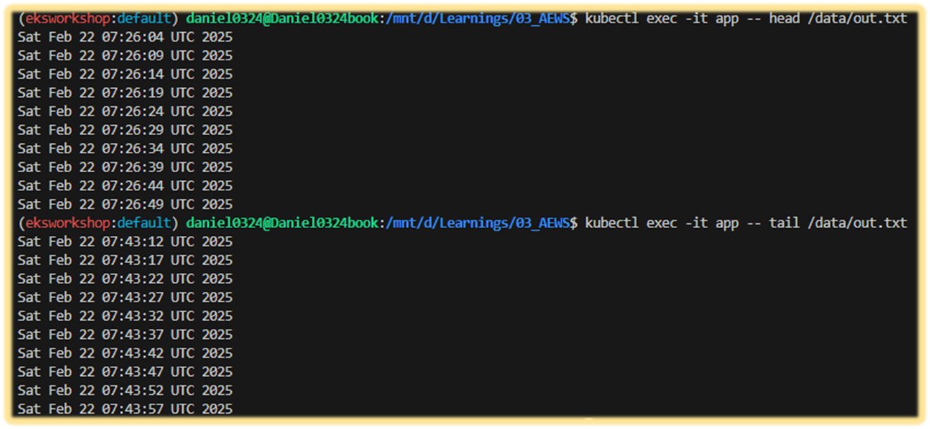 kubectl exec -it busybox -- tail -f /home/pod-out.txt