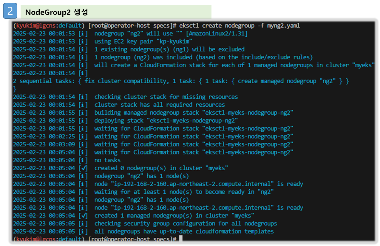 Step2. myeks.yaml 파일 작성 : vpc/subnet 과 ssh 키 이름 수정 ( step1. 변수설정 참조 동적반영)