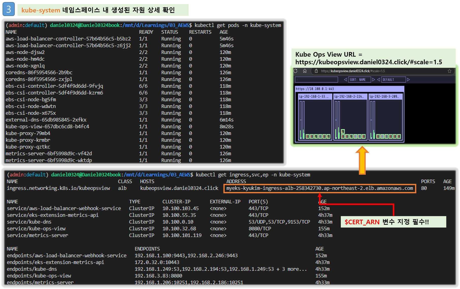 ☞ 최종 구성도 : 2개의 VPC(EKS 배포, 운영용 구분), 운영서버 EC2, 워커노드 t3.xlarge