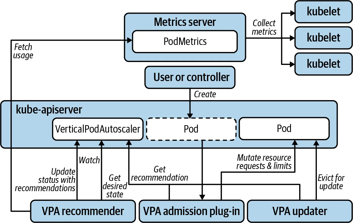 - 파드의 리소스를 감시하여, 파드의 리소스가 부족한 경우 파드를 Restart하며 파드의 리소스를 증가시키고, 반대로 리소스가 남을 경우 정해진 수순에 따라 리소스를 감소 시킨다. ( Scale-up & Scale-down )