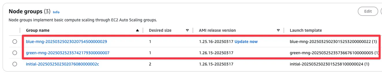 ☞ 이 워크숍의 목적을 위해, 우리는 모든 애플리케이션 테스트를 완료했으며, 업그레이드 과정을 완료하기 위해 애플리케이션 트래픽을 그린 클러스터로 이동시키는 데 자신이 있다는 점을 고려할 것입니다.