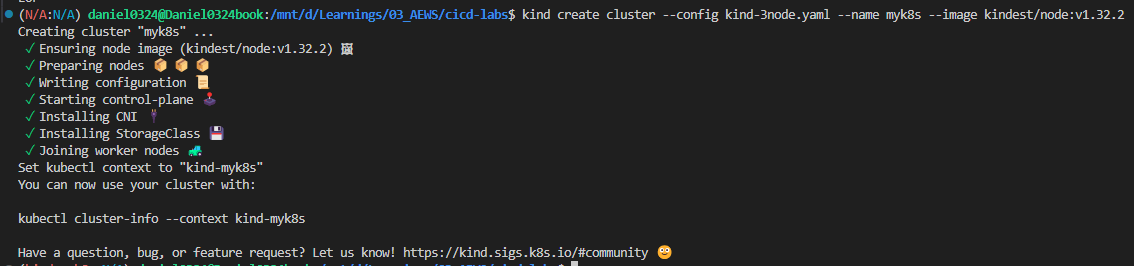 kind create cluster --config kind-3node.yaml --name myk8s --image kindest/node:v1.32.2