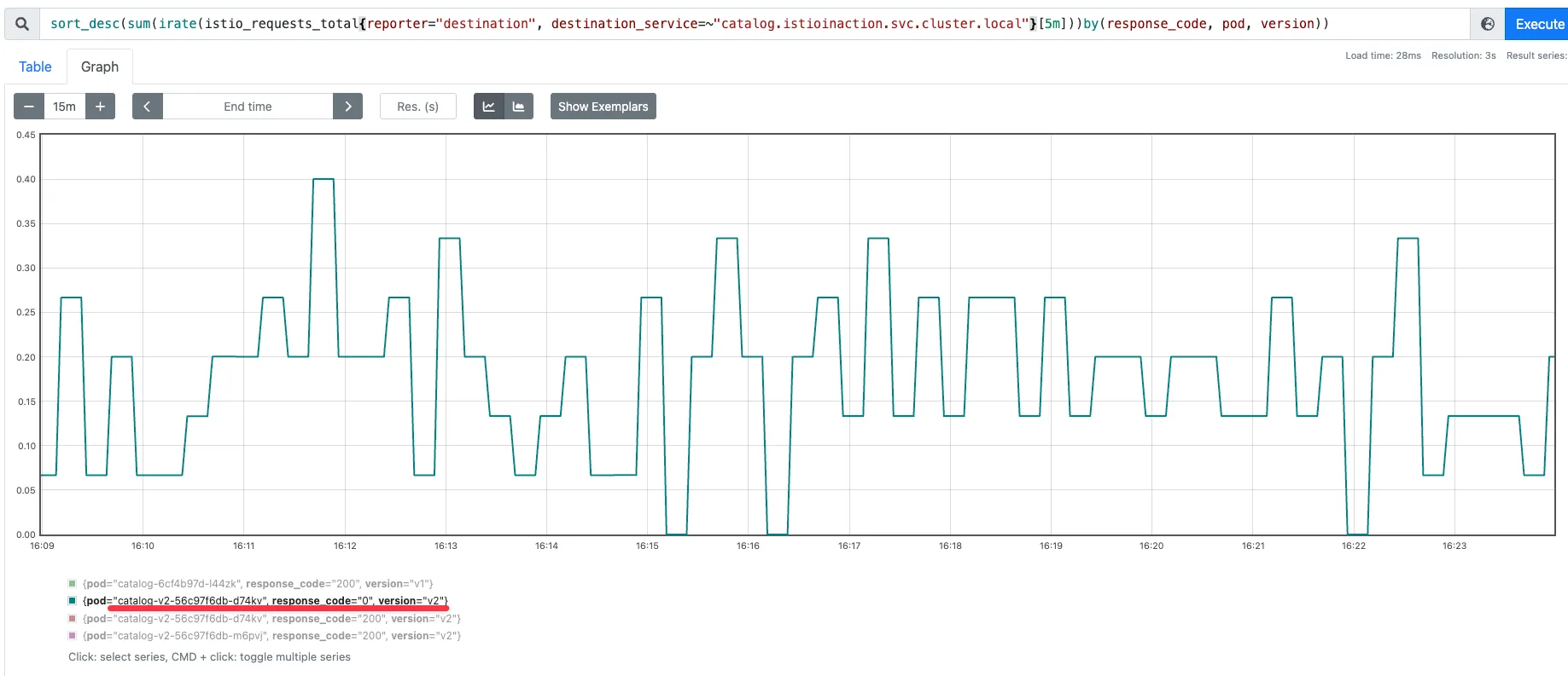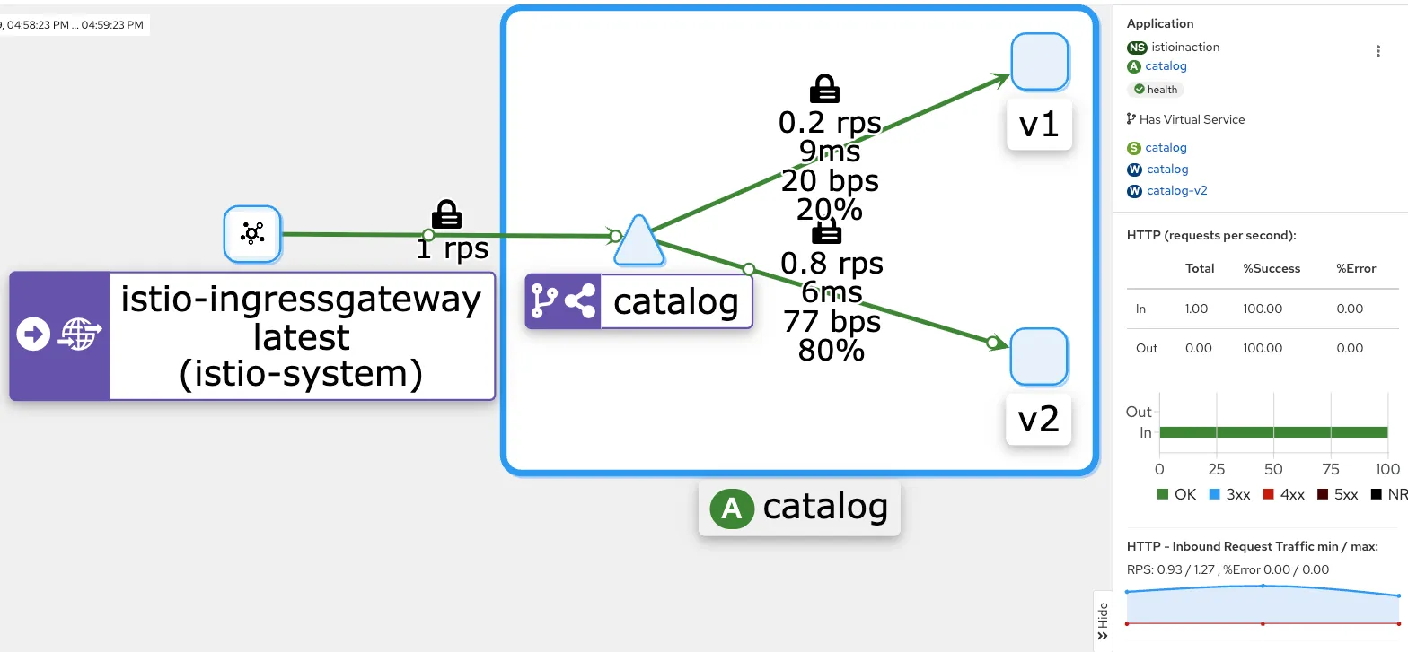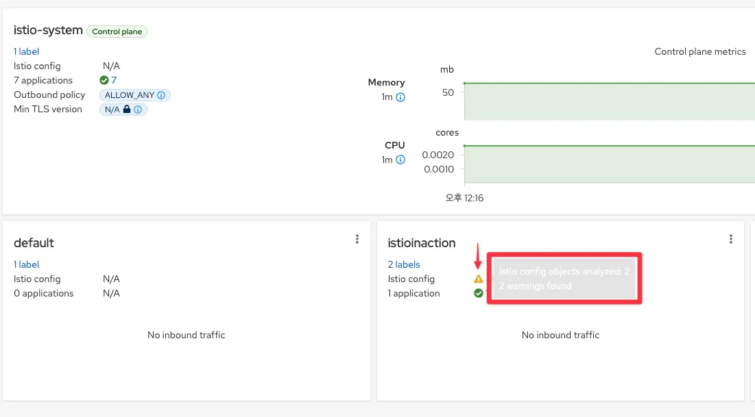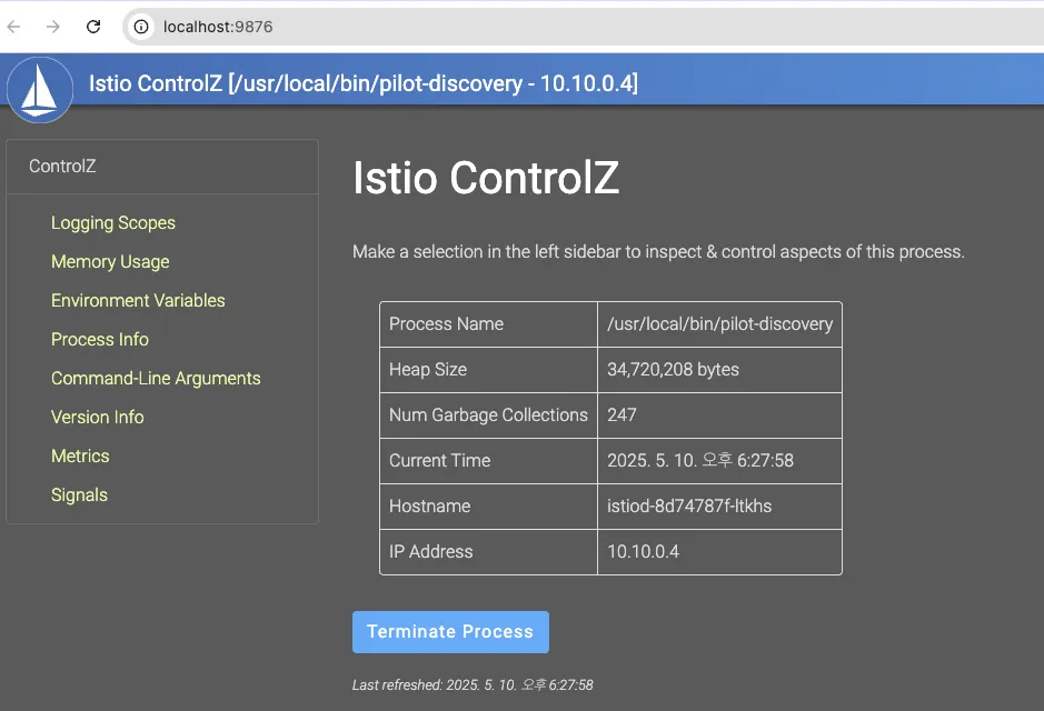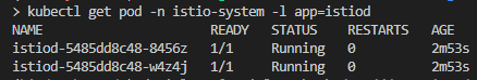 - 아무런 부하를 받지 않으니 새 istiod 복제본은 축소된다.
