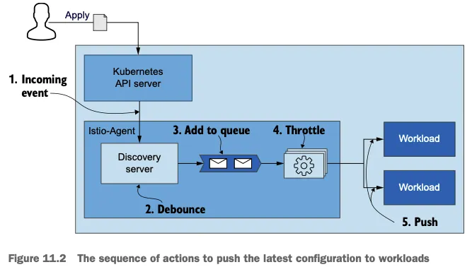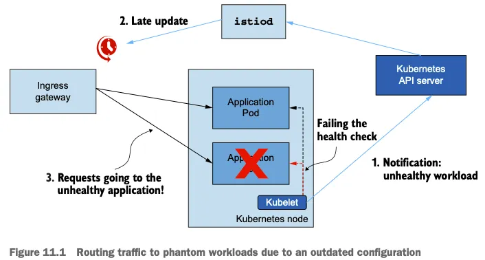 - 따라서 새로이 생성된 istiod 복제본은 서비스 프록시와 종전 파일럿 사이의 커넥션이 만료될 때까지는 아무런 부하를 받지 않는다.
