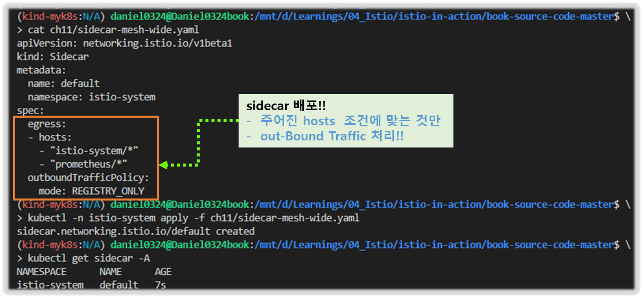 - 항상 sidecar 커스텀 리소스를 사용해 변경 범위를 지정하자. 그렇게 하면 다음과 같은 효과를 얻는다.