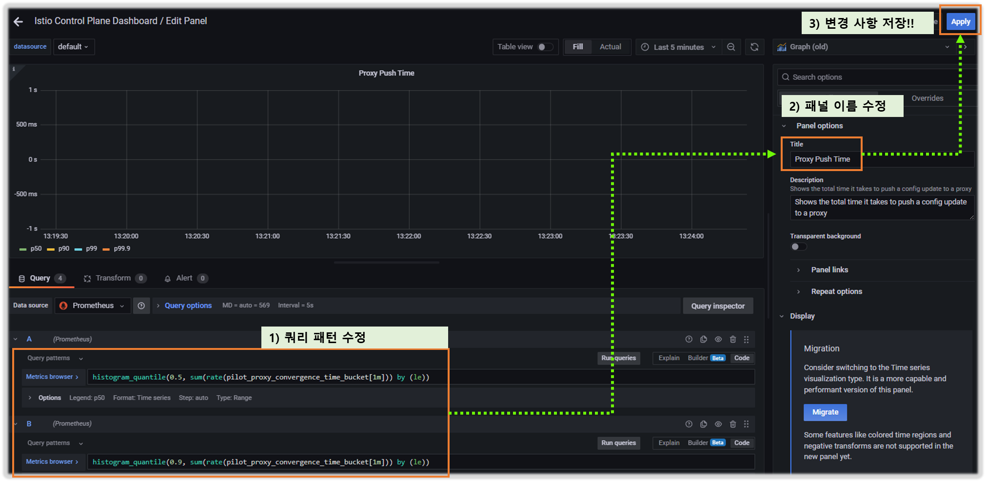- 컨트롤 플레인 튜닝 방법을 결정하는 데 그라파나의 Istio Control Plane 대시보드를 사용하자.