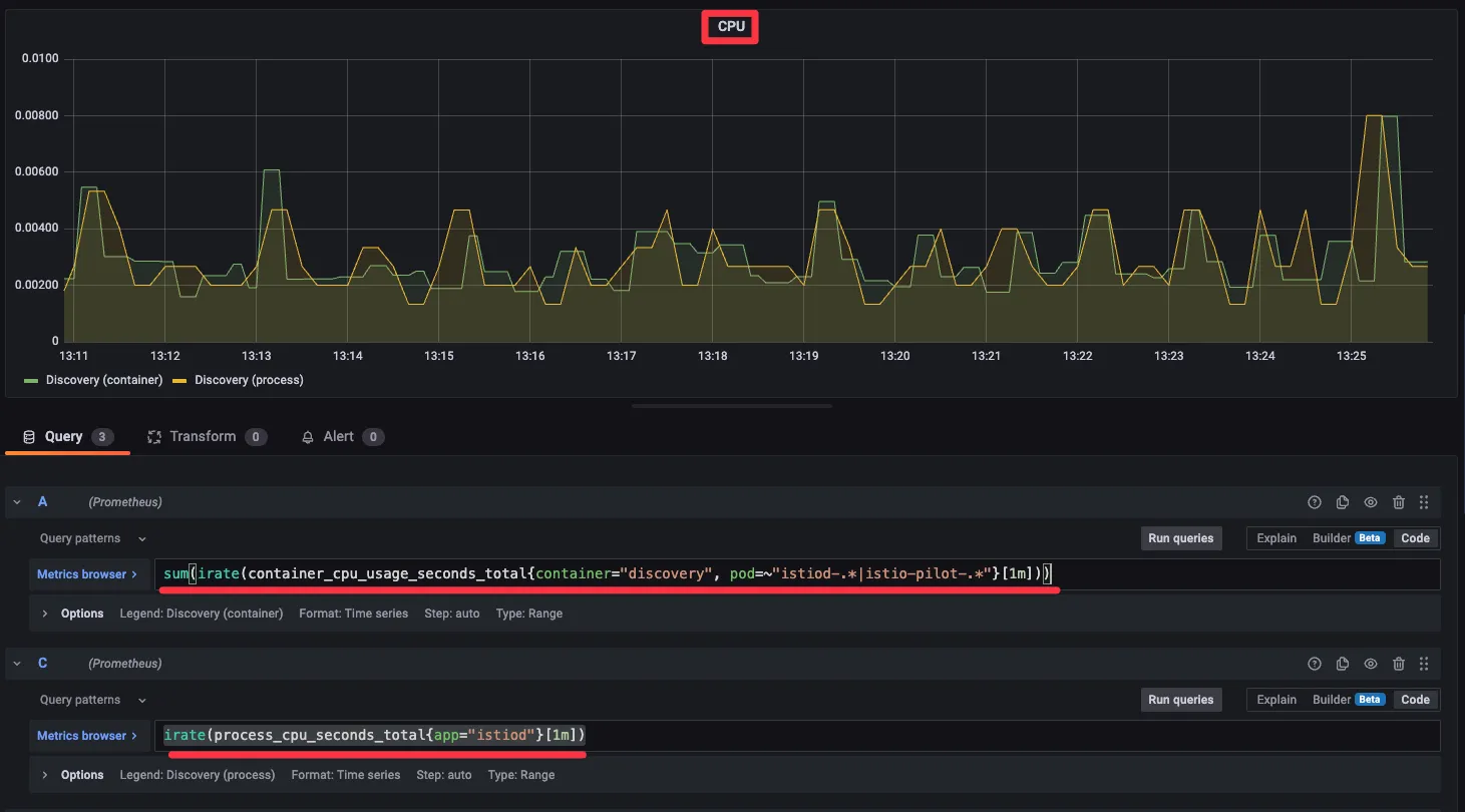 - 이스티오 파일럿은 CPU 리소스가 계속 필요하지 않으므로 버스트성 성능 요구 사항이 있다.