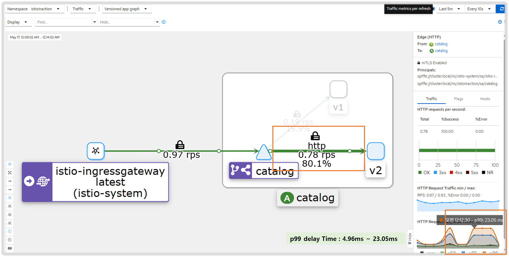 - 서비스 메시 전체에서 초당 요청 70,000개 requests per second in the entire service mesh