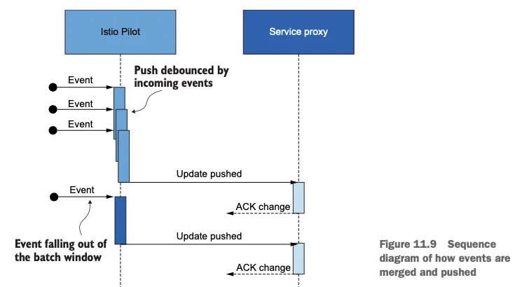 - 기반 플랫폼에서 받는 변경 속도는 우리가 제어할 수 없다. 그러나 이벤트를 배치 처리할 기간을 정의해 데이터 플레인을 업데이트할 작업량을 줄일 수는 있다.