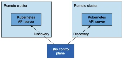 - Istio 컨트롤 플레인은 서비스 프록시를 설정하기 위해 동료 K8S 클러스터의 워크로드를 찾아야 한다. (K8S 클러스터 API 서버를 상대편 클러스터의 이스티오 컨트롤 플레인에서 접근할 수 있어야 한다. The control planes must discover the workloads in the peer clusters in order to configure the service proxies (the API server of the clusters must be accessible to Istio’s control plane in the opposite cluster).