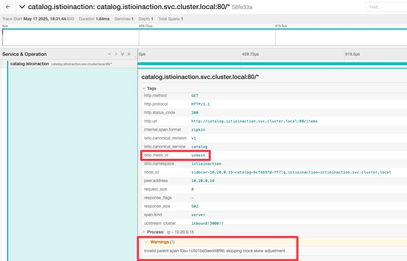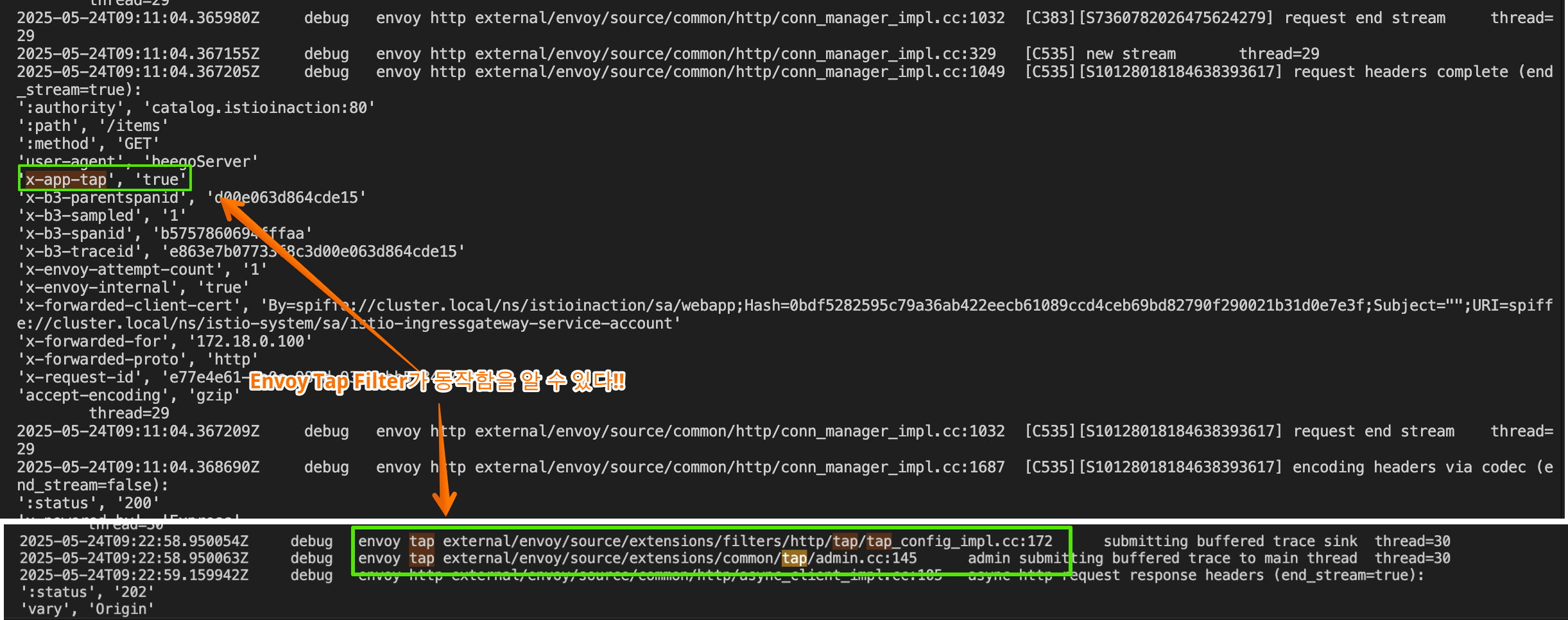 [2025-05-18T09:42:40.575Z] "POST /api/catalog HTTP/1.1" 403 - - "-" 26 0 39 - "172.18.0.1" "curl/8.7.1" "c30d47e1-5631-99ae-91f2-5dfd8174b421" "webapp.istioinaction.io:30000" "10.10.0.16:8080" outbound|80||webapp.istioinaction.svc.cluster.local 10.10.0.10:44518 10.10.0.10:8080 172.18.0.1:63266 - -