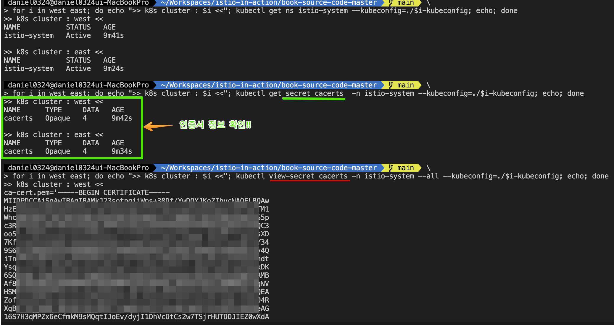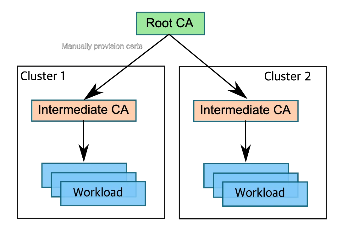 - 여러 클러스터의 워크로드 간에 공통 신뢰 common trust 설정하기 Setting up common trust between workloads of different clusters