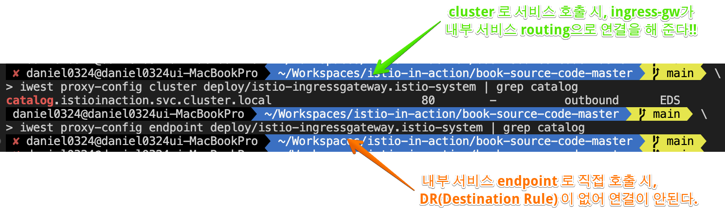- 이 모든 것은 VirtualService, DestinationRule, Sidecar 등이 적용된 Istio 구성을 따른다. All of this is in accordance with the applied Istio configuration