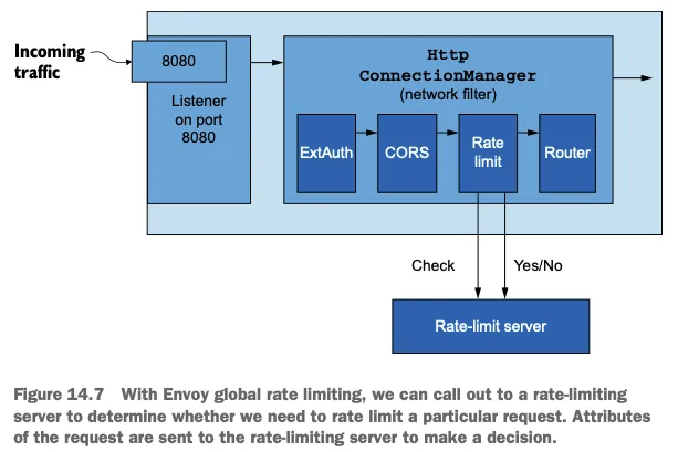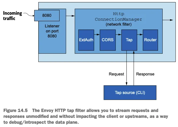 - 속도 제한이나 tap 필터 같은 기능으로 서비스 간 통신에서 엔보이의 요청 경로를 확장할 수 있다. We can extend Envoy’s request path for service-to-service communication with functionality like rate limiting or the tap filter.