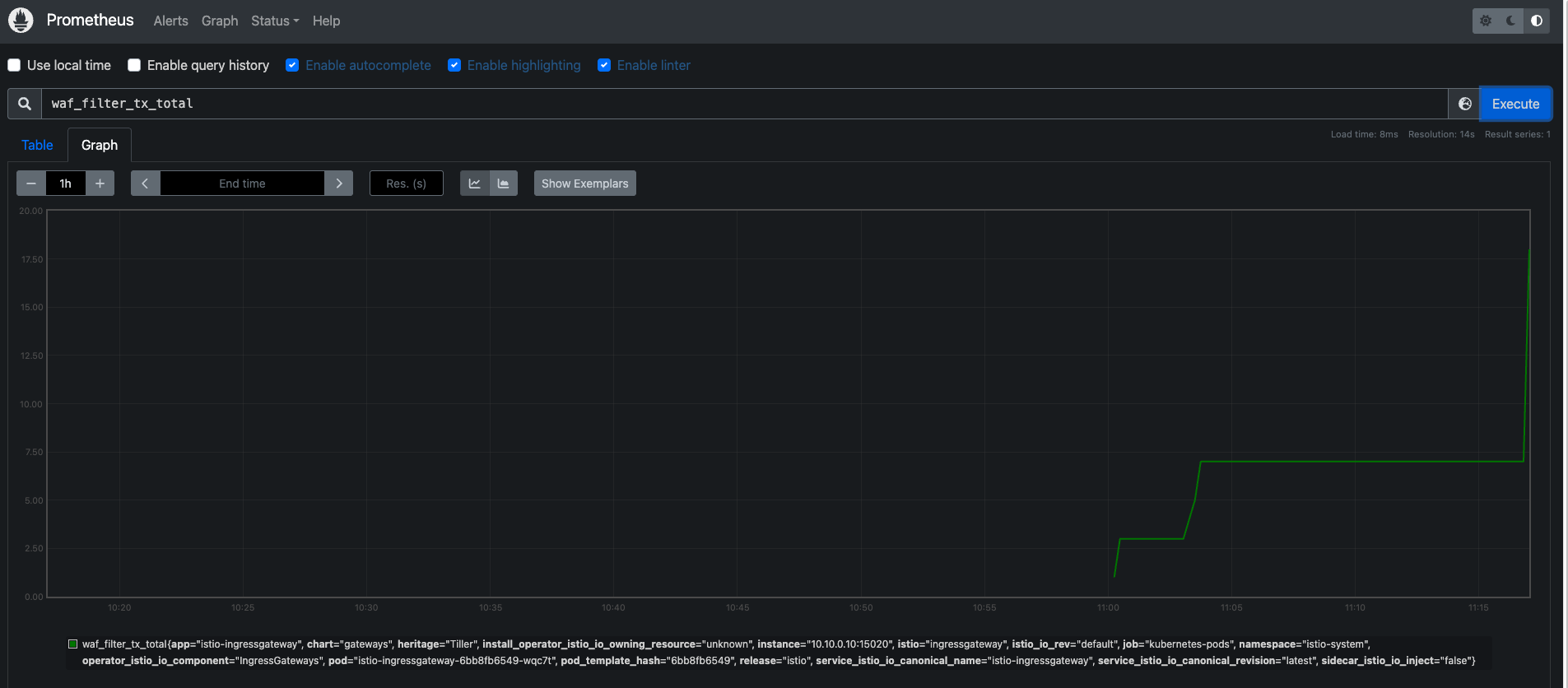 Step3. 프로메테우스 메트릭 확인 : curl -s localhost:8082/stats/prometheus | grep waf_filter
