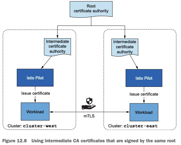- 이스티오의 보안 기능을 활성화하려면 클러스터 간 워크로드가 서로 인증해야 한다. Cross-cluster workloads must mutually authenticate to enable the security features of Istio.