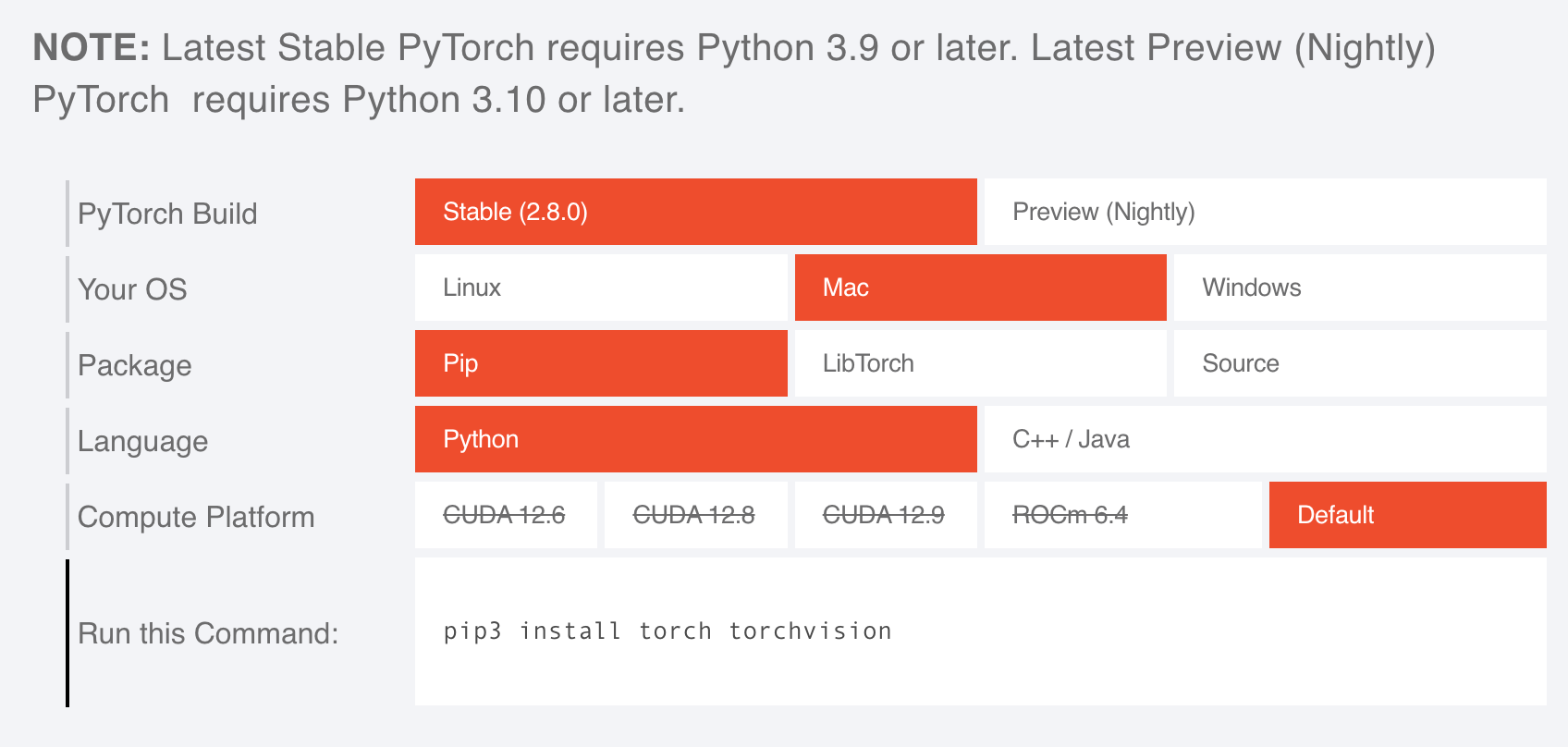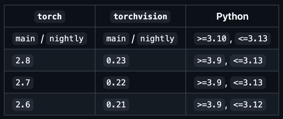 4) torch / torchvision 호환성 : https://github.com/pytorch/vision#installation