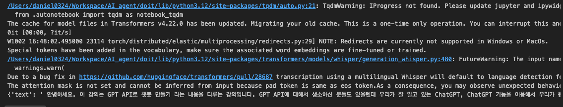 print(content_chunk, end="") # ④ 터미널에 줄바꿈 없이 이어서 출력