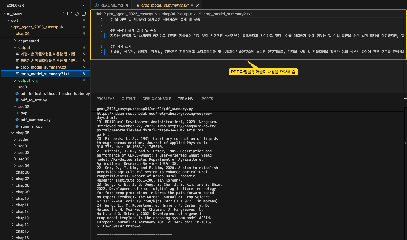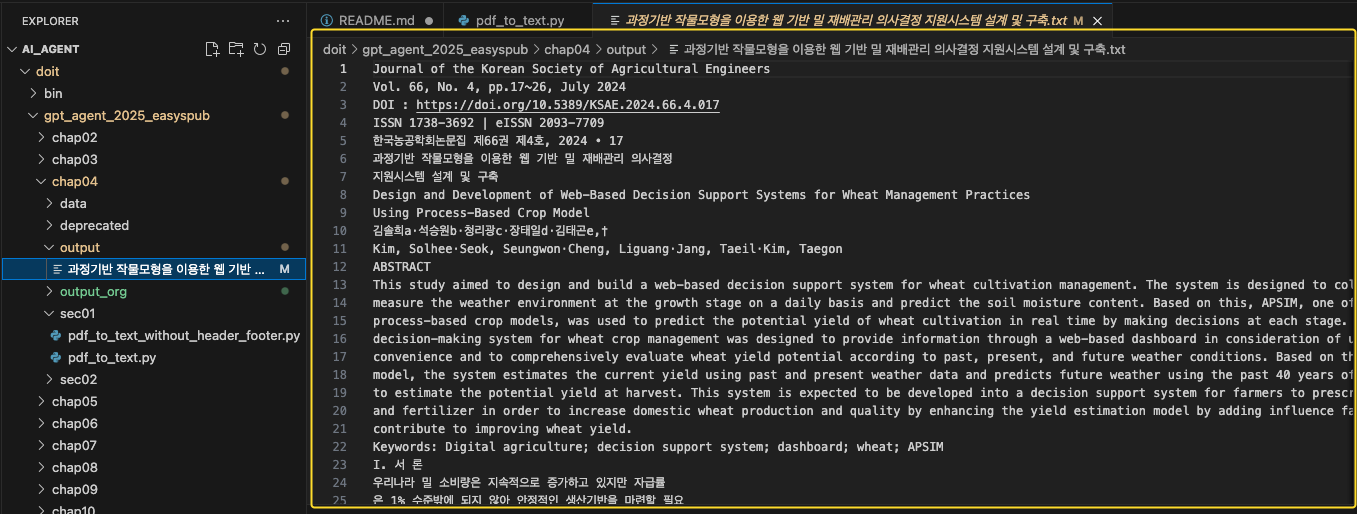 pdf_file_path = "chap04/data/과정기반 작물모형을 이용한 웹 기반 밀 재배관리 의사결정 지원시스템 설계 및 구축.pdf"
