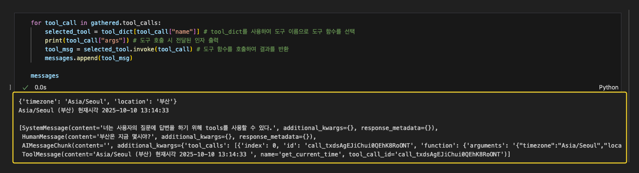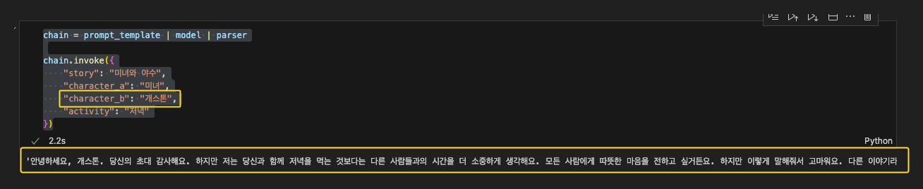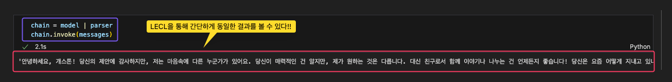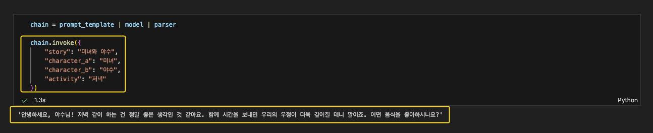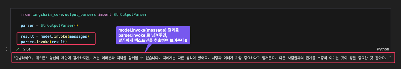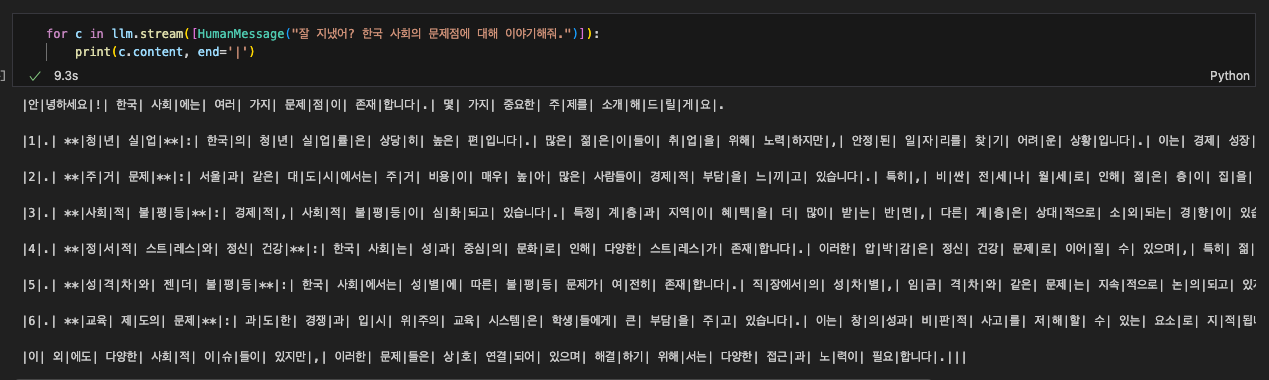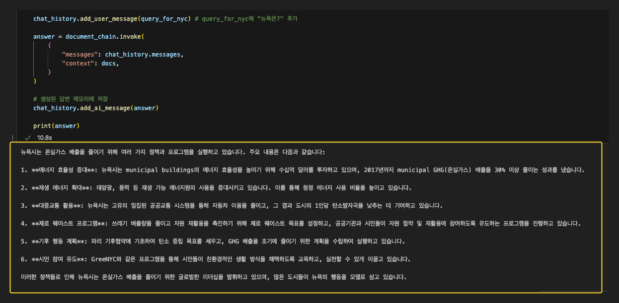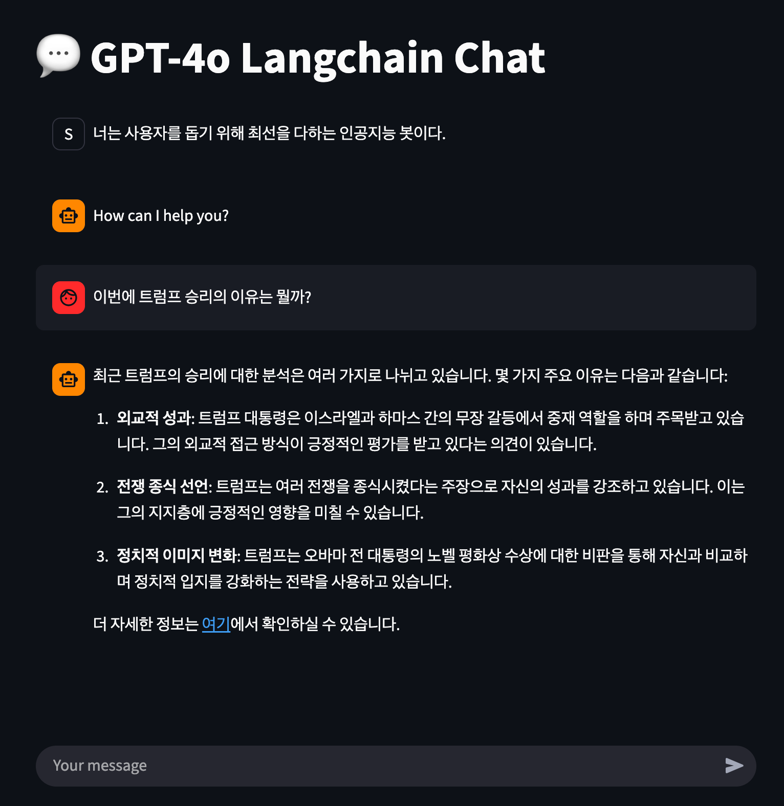 [ 실행 결과 - 이전 대화를 기억함을 알 수 있다. ]