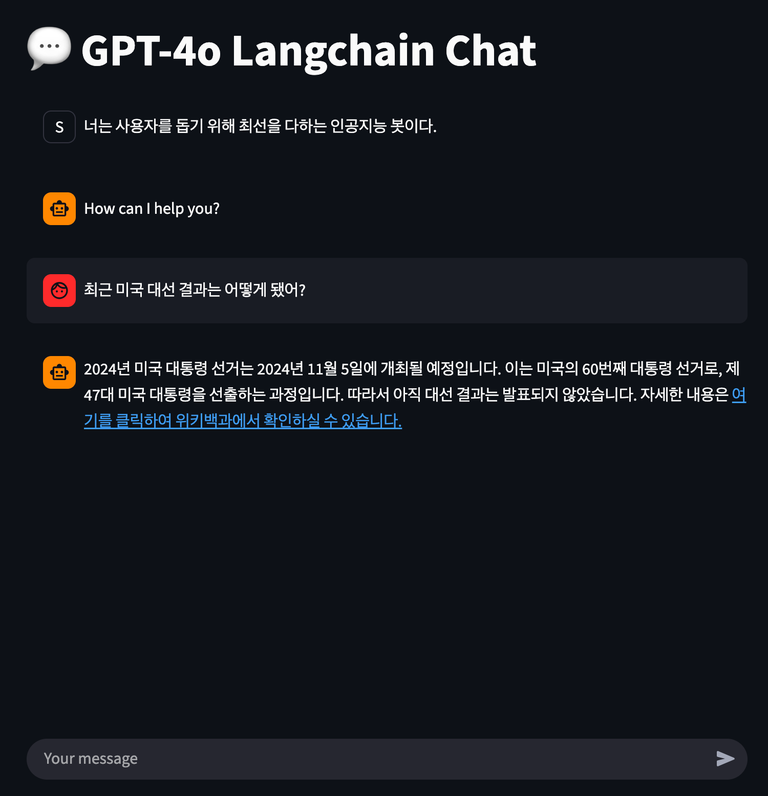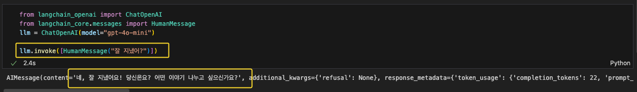 ai_response = llm.invoke(messages) # 대화 기록을 기반으로 AI 응답 가져오기