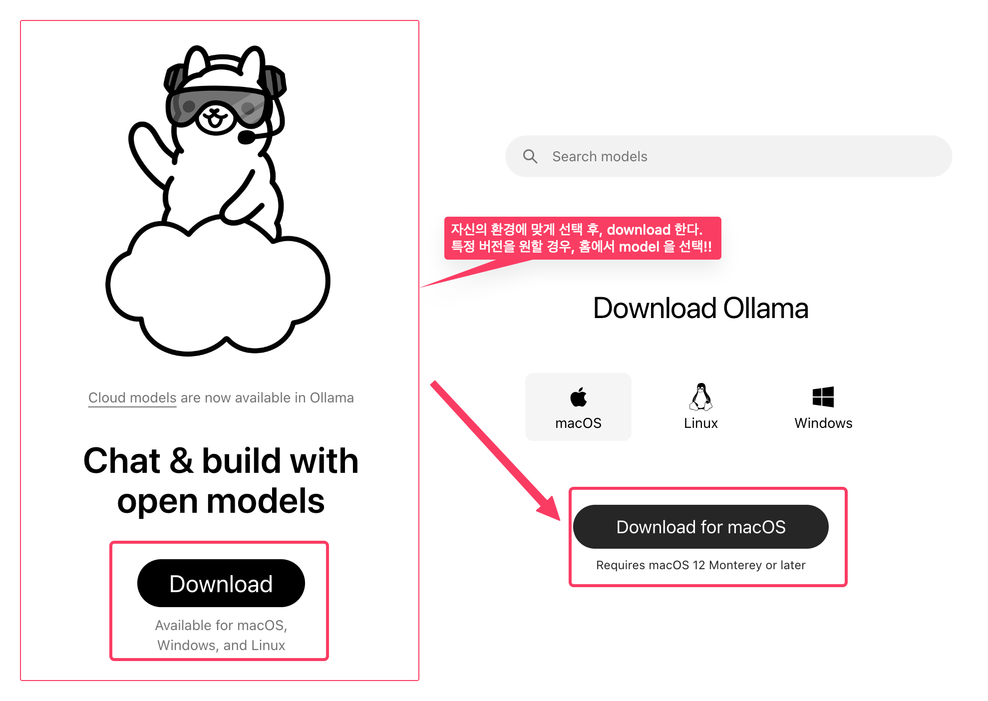 - 새로운 모델 다운로드: ollama run [모델 이름]
