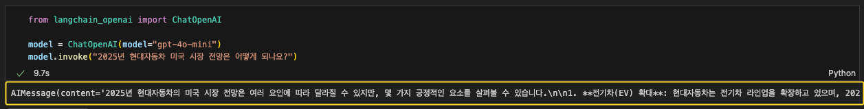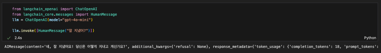 llm = ChatOpenAI(model="gpt-4o") # ChatOpenAI 클래스의 인스턴스 생성
