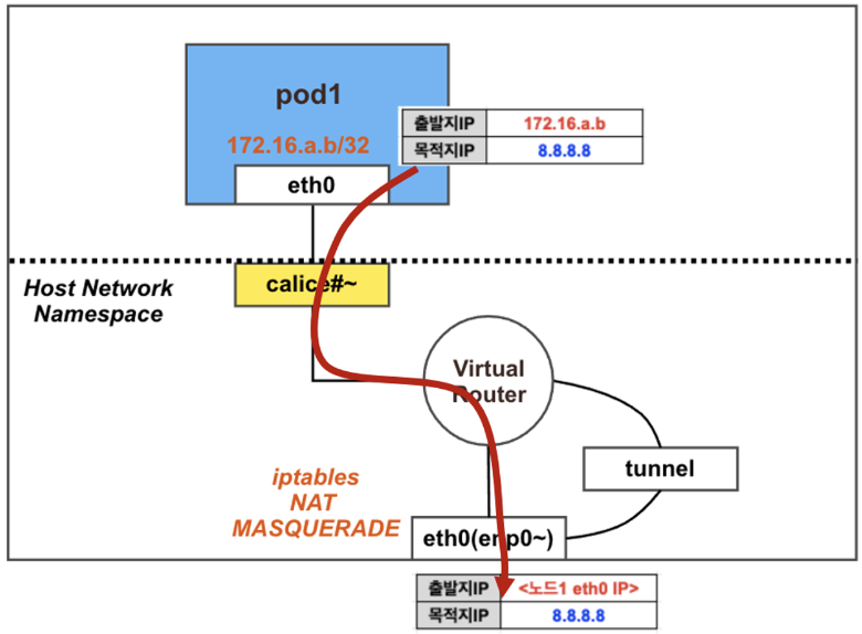 라우팅 테이블과 IPtables를 통해 이루어진다.