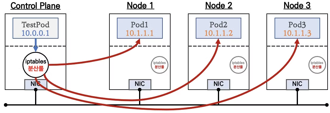 # 컨트롤플레인 노드에는 목적지 파드가 없는데도, 접속을 받아준다! 이유는?